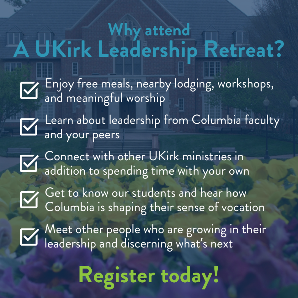 This is the question that UKirk students and campus ministers will be invited to explore during our UKirk Leadership Retreat August 12-14, 2026, on the Columbia Theological Seminary campus in Decatur, Georgia.